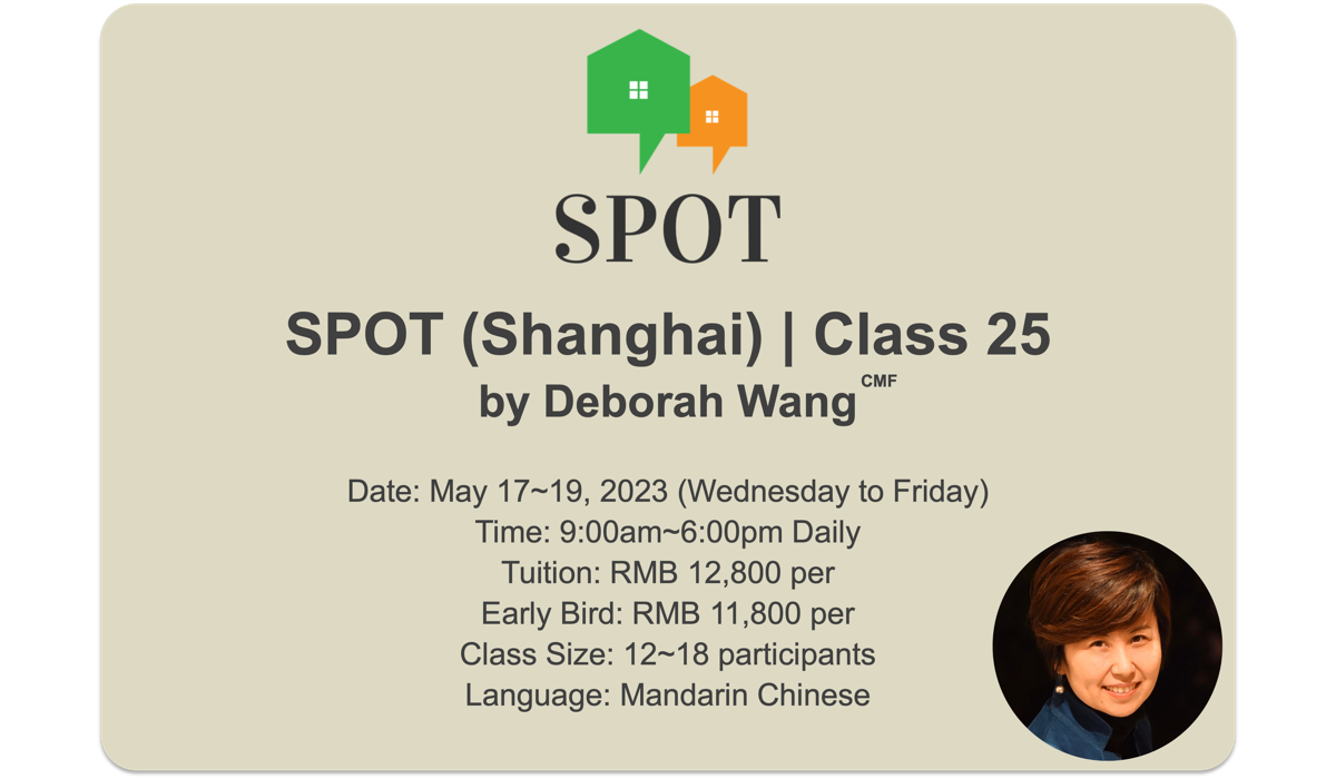 Fees inclusive of tuition, the SPOT book, participant’s workbook, course materials, lunches and refreshments. It does not include your own transportations, dinners or accommodations. In case of your dissatisfaction with the program for any reason, you will receive a full refund if you cancel your seat within the first day of the program.